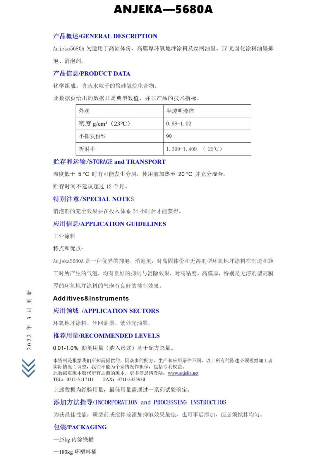 Anjeka-5680A有机硅消泡剂 替代BYK1799 适用于环氧 地坪漆消泡剂