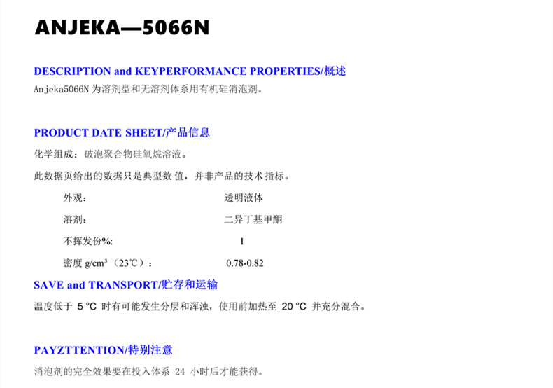 安吉康Anjeka5066N 有机硅消泡剂 可替代BYK066N消泡剂